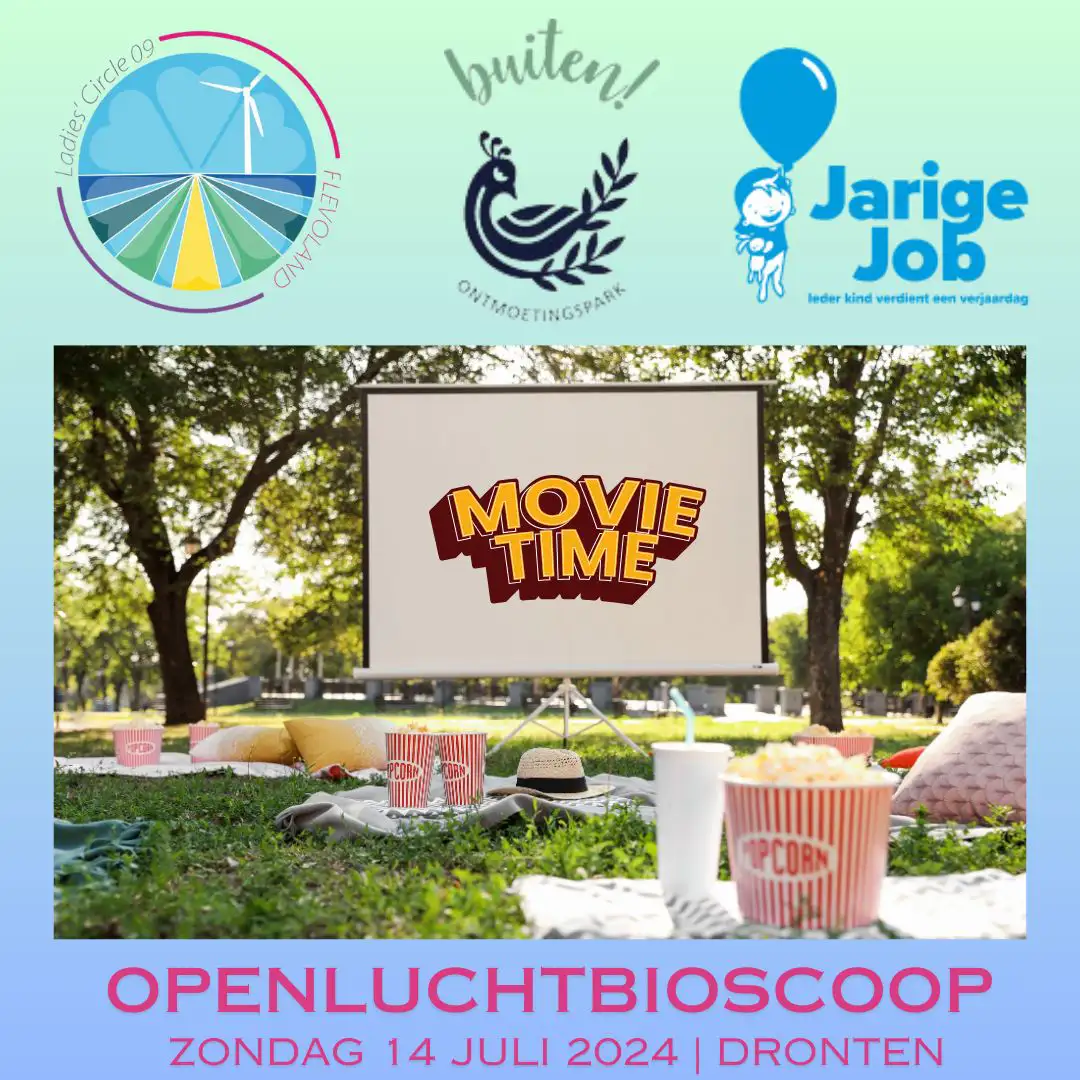 PERSBERICHT | Ladies’ Circle Flevoland organiseert op zondag 14 juli in samenwerking met Ontmoetingspark Buiten in Dronten een openluchtbioscoop voor gezinnen. Er wordt een leuke familiefilm vertoond. De opbrengsten gaan volledig naar Stichting Jarige Job, die verjaardagsboxen geeft aan kinderen die dat nodig hebben.